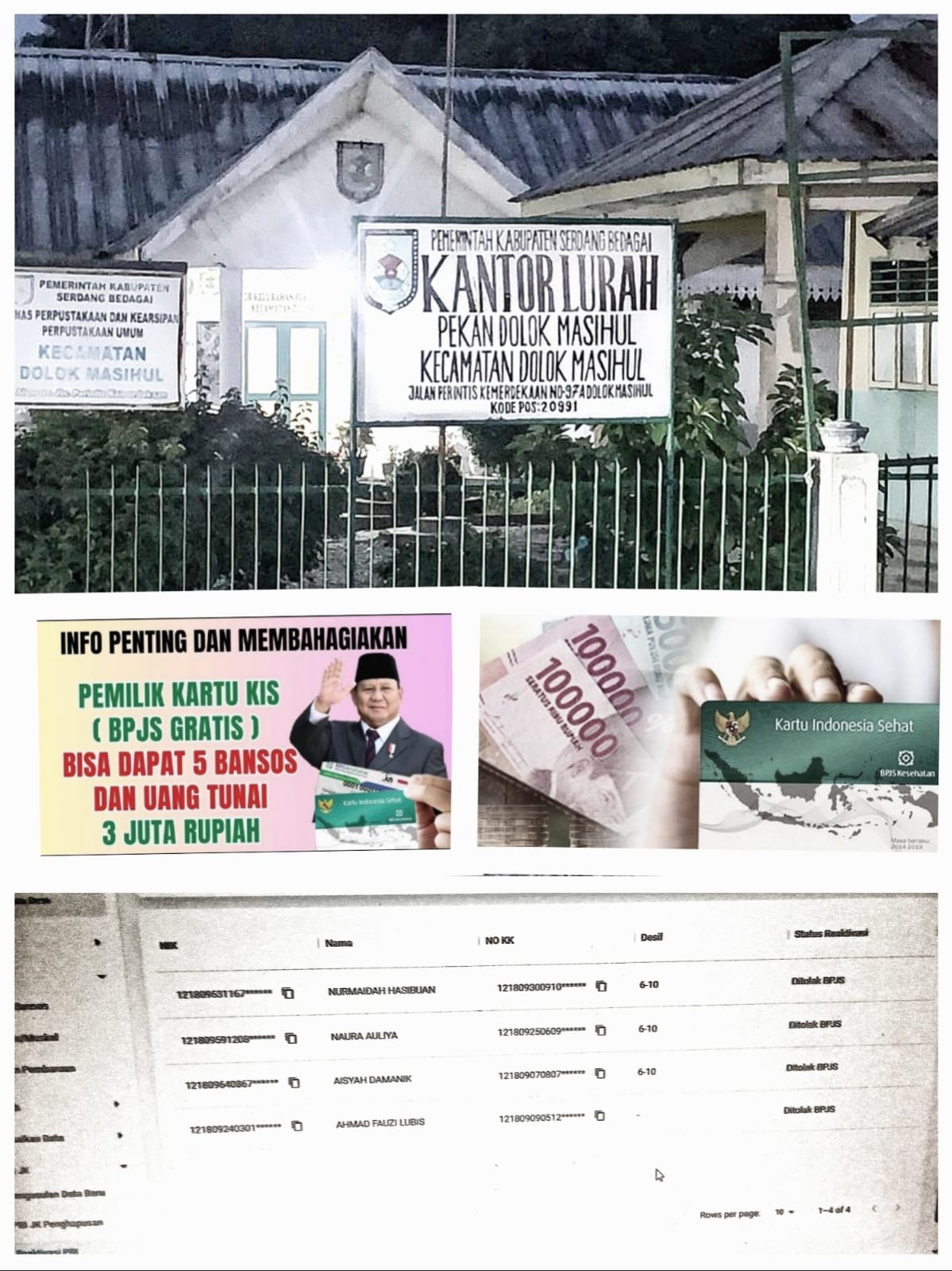 “Kalau nama lama hilang, lalu muncul nama baru, tapi tidak ada orangnya, berarti ini data hantu. Jangan-jangan ada kepentingan kelompok tertentu menjadikan bansos dan BPJS gratis sebagai alat politik,” tegas seorang tokoh masyarakat Dolok Masihul.