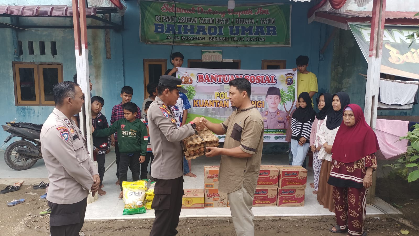 Adapun panti asuhan yang menerima bantuan yakni Panti Asuhan Umar Baihaqi dan Panti Asuhan Generasi Harapan yang berada di Desa Beringin Taluk, serta Panti Asuhan Putri Aisyah yang berlokasi di Perumnas Taluk Kuantan. Bantuan yang diberikan berupa kebutuhan pokok seperti mie instan, beras, minyak goreng, dan telur ayam untuk membantu memenuhi kebutuhan sehari-hari anak-anak panti.