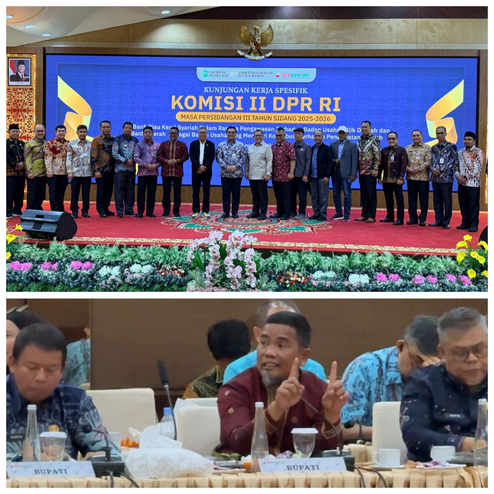 Pelalawan|Mediatorpost.com-Bupati Pelalawan H. Zukri, S.M., M.M menghadiri kunjungan kerja Komisi II DPR RI ke Provinsi Riau dalam rangka pengawasan terhadap Badan Usaha Milik Daerah (BUMD) dan bank daerah sebagai pilar penting dalam peningkatan pendapatan asli daerah. Kegiatan tersebut berlangsung di Menara Dang Merdu Bank Riau Kepri, Pekanbaru, Kamis (2/4/2026).